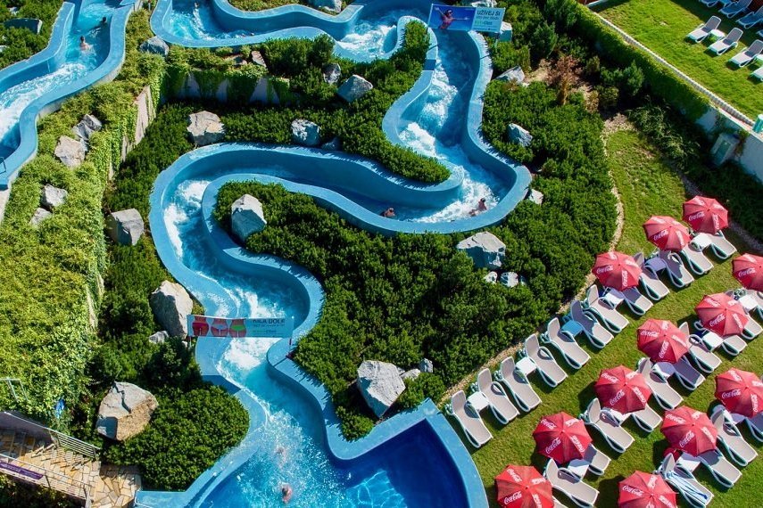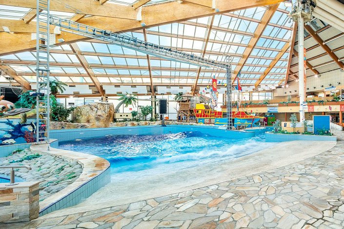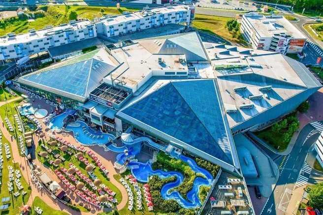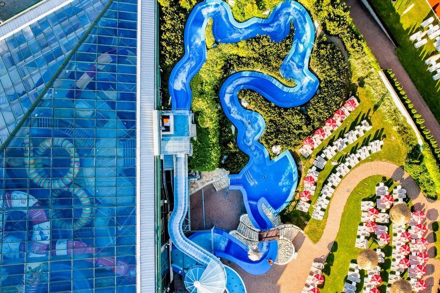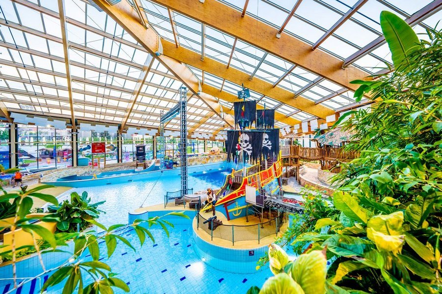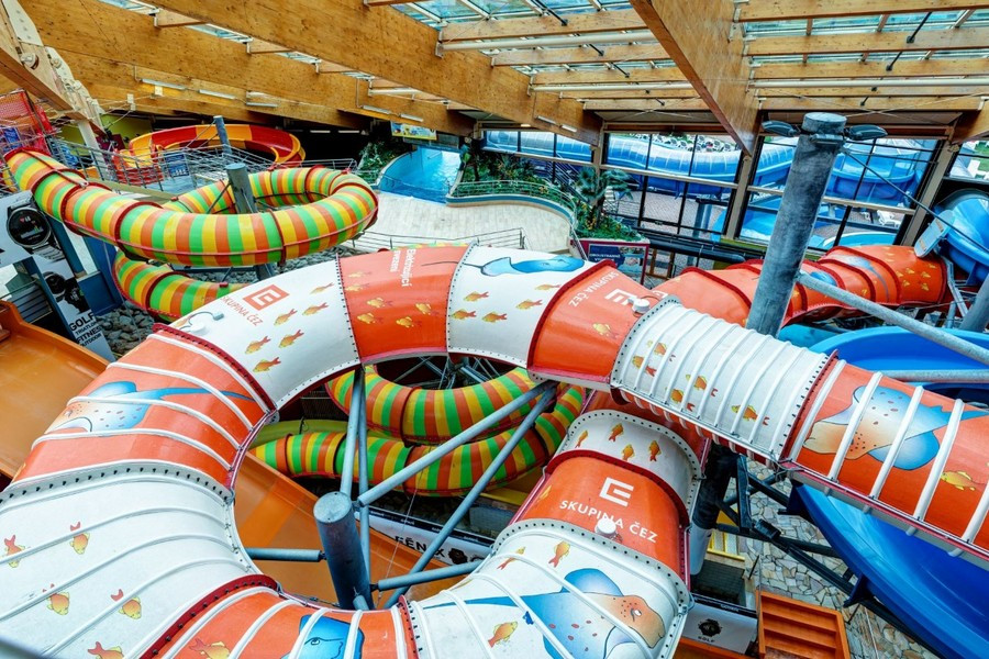 - Vodný svet (12 tobogánov, vírivky, vlnobitie, divoká rieka, palác pokladov, detská sauna)