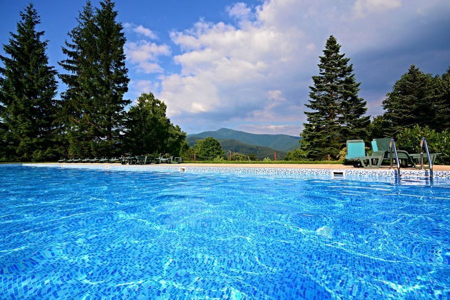 • Vyhrievaný vonkajší bazén (25×8 m, teplota 26 °C)