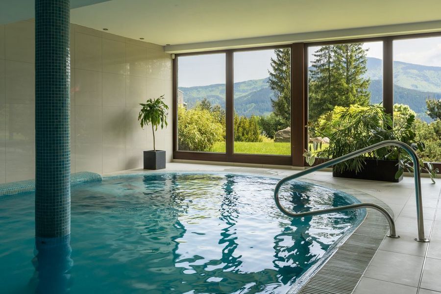 • Vyhrievaný vnútorný bazén (9×5 m, teplota 29 °C)