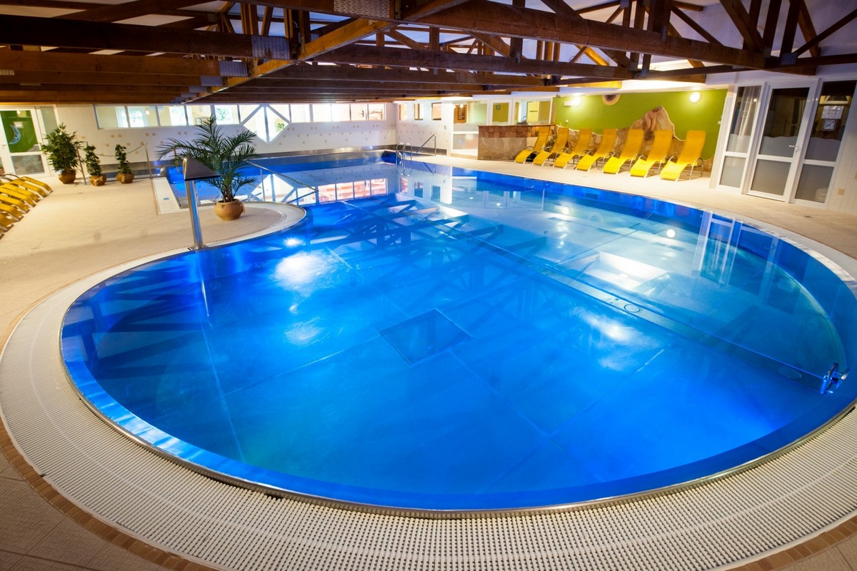 - Plavecký bazén (15,5 × 8 m), sedací bazén s tryskami