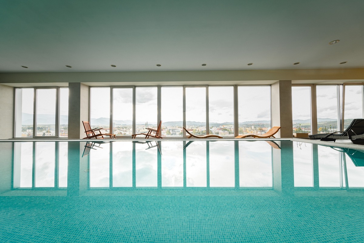 - Vnútorný bazén s panoramatickým výhľadom na mesto