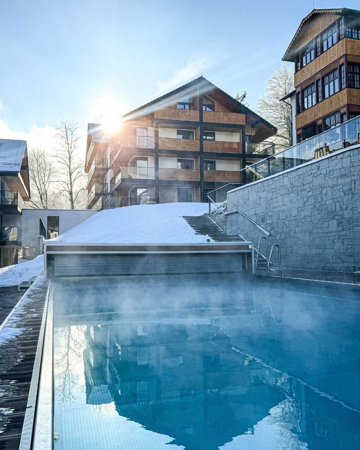 • Celoročný vonkajší bazén s panoramatickým výhľadom na hory