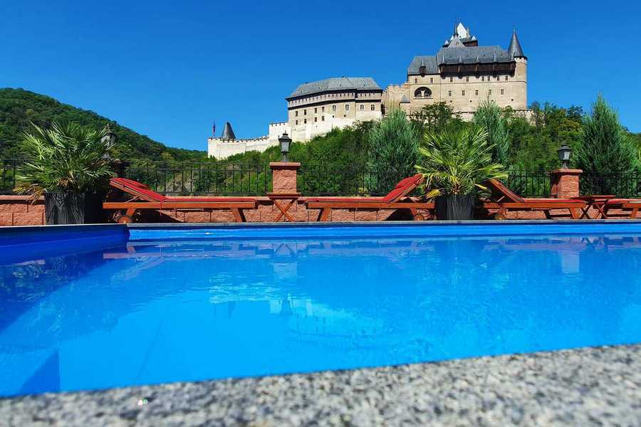 Kľudné ubytovanie hotelového typu ležiace vzdušnou čiarou iba 50 metrov od obľúbeného hradu Karlštejn. Objekt je – okrem bežného rodinného ubytovania – využívaný aj na organizovanie svadieb a firemných akcií. Ubytovaní hostia majú bez príplatku možnosť využiť hotelový bazén, ktorý je naplnený slanou vodou a umožňuje výhľad na hrad.