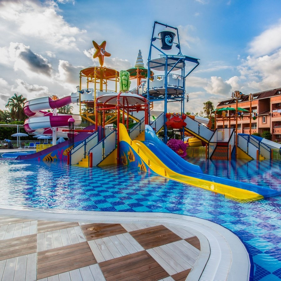 • Vodný park s bazénmi, šmykľavkami a športoviskami