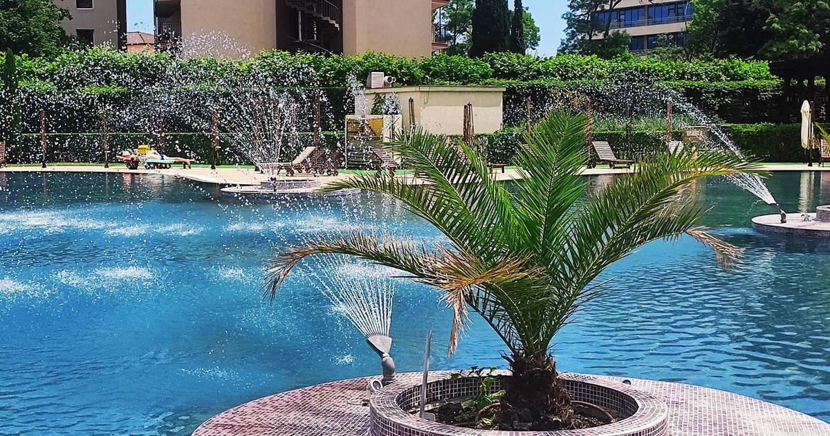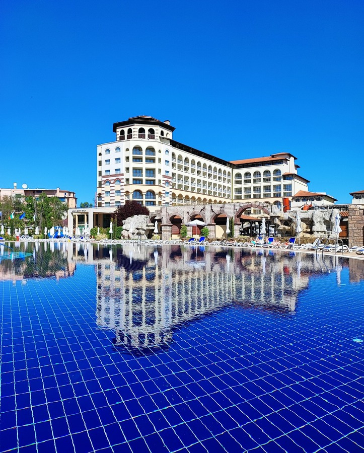 Majestátny komplex 5 budov sa nachádza v južnej časti Slnečného pobrežia, v blízkosti centra letoviska. Starobylé mestečko Nesebar je vzdialené približne 5 km, letisko v Burgase potom asi 32 km. Hotel susedí s dlhou piesočnatou plážou, ktorá má vyhradený sektor určený výlučne hotelovým hosťom. Zariadenie prevádzkuje vodný minipark, ktorého základ tvoria 3 veľké bazény a jeden krytý bazén.