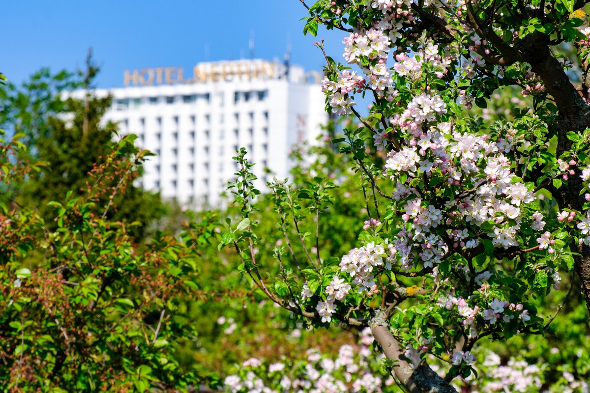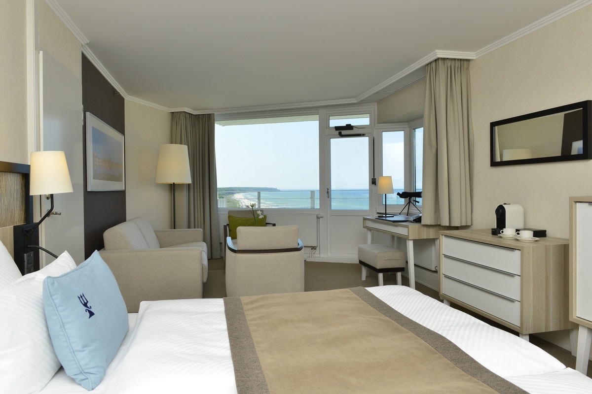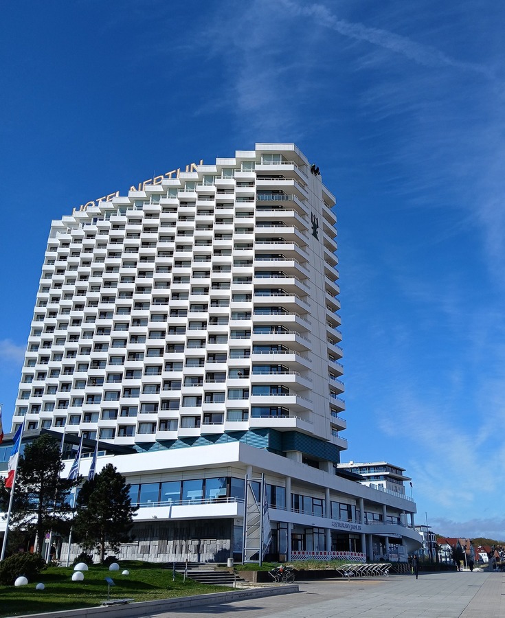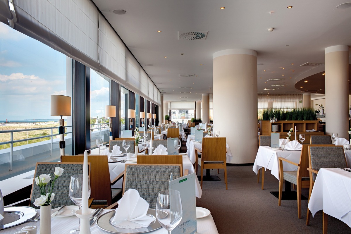 Rezort sa nachádza priamo pri pláži v štvrti Warnemünde – mestskej časti prístavného mesta Rostock. Pár minút chôdze od budovy sa nachádza plážová promenáda, a vďaka dostupnosti hromadnej dopravy je potom možné v okolí navštíviť napr. múzeum lodného staviteľstva, historickú mestskú bránu (Kröpeliner Tor), ZOO, prístav alebo lodný maják (Maják Warnemünde). Hotel ponúka rôzne typy luxusne zariadených izieb, z ktorých niektoré disponujú výhľadom na more. V oblasti stravovania je hosťom k dispozícii reštaurácia, gril, vinotéka alebo bar + kaviareň s panoramatickým výhľadom. Súčasťou hotela je aj krytý bazén a wellness zóna (celková plocha 2 400 m²).