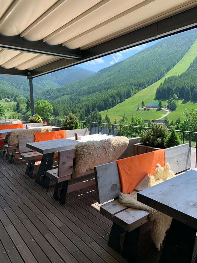 - Terasa s výhľadom na okolitú prírodu