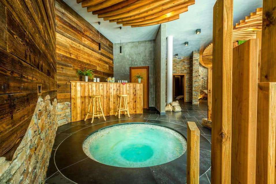 - Vnútorný bazén s protiprúdom, chrličom vody a masážnou hlavicou