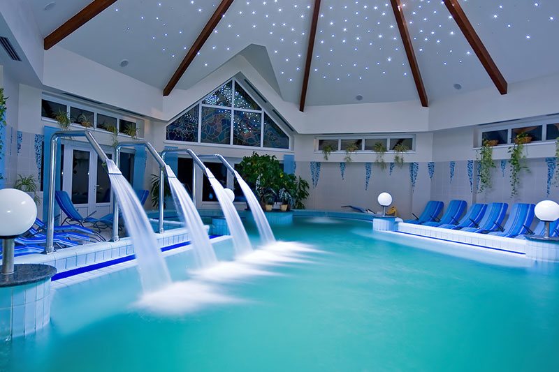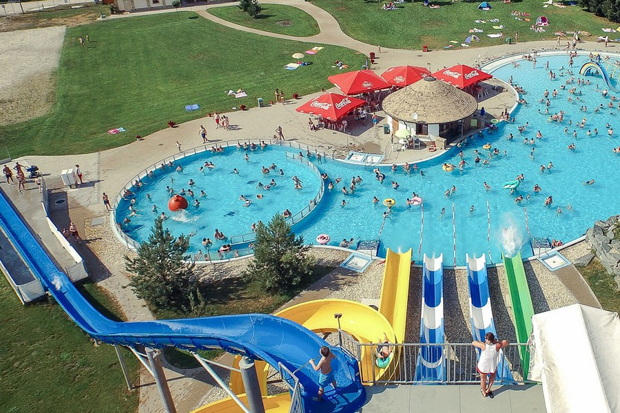 - Vnútorné a vonkajšie termálne bazény (teplota až 37 °C)