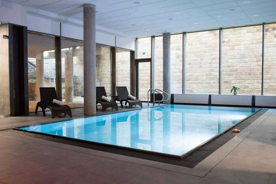 - Vnútorný bazén s morskou vodou a protiprúdom (8×4 m)