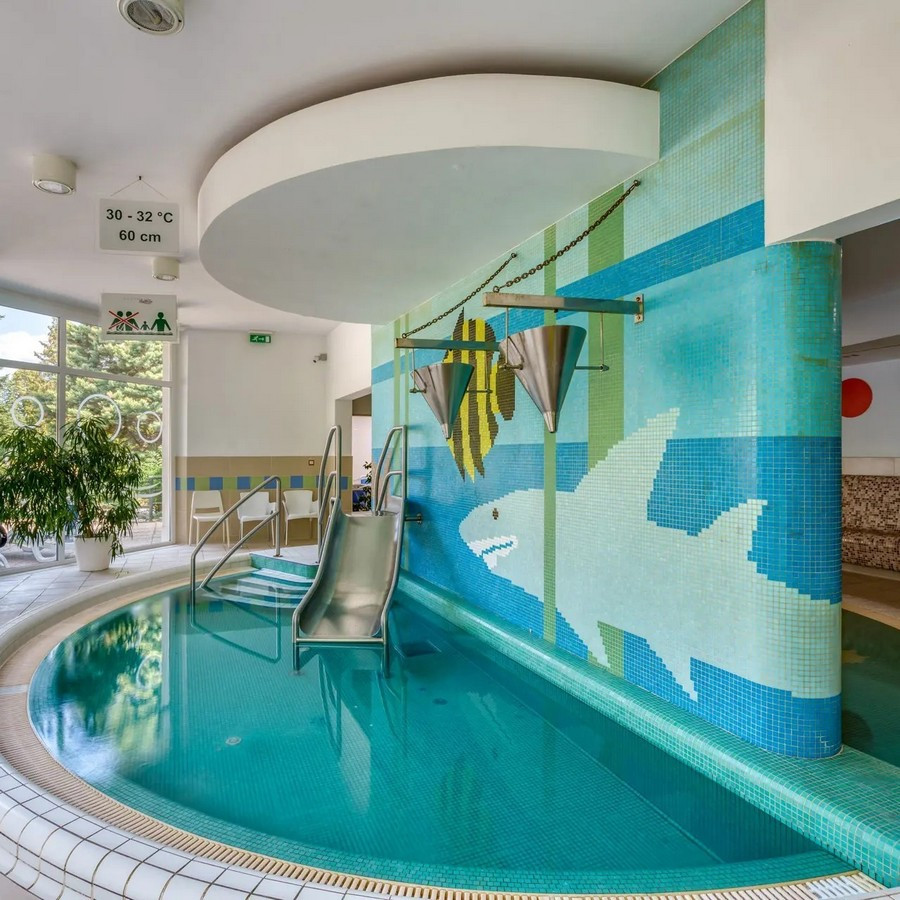 - Krytý polený termálny bazén (33 °C a 37 °C)